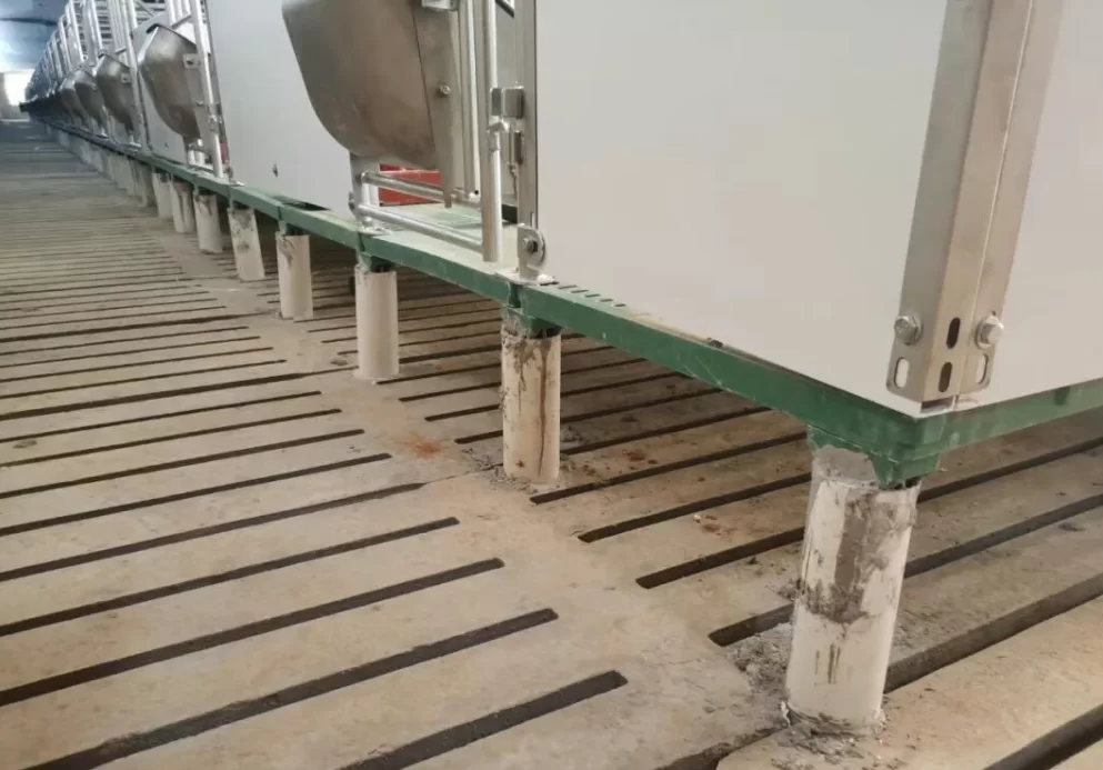 The high-leg farrowing crate is generally installed at a height of about 20 cm, which is convenient for sows to enter and leave, and more convenience for clean up feces.