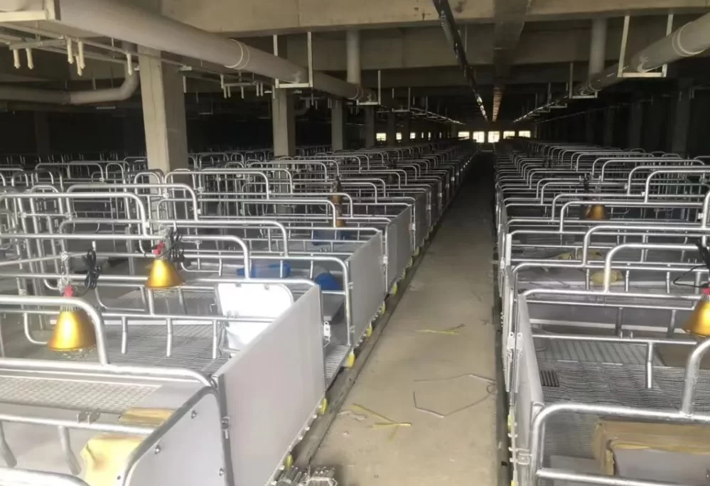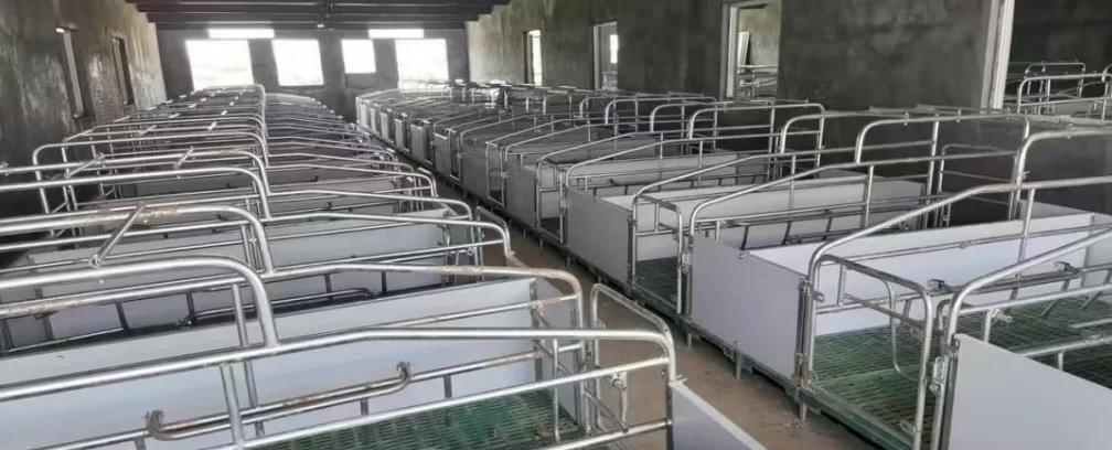 High-leg farrowing crate are common used in small-scale pig farms. They are simple in construction and do not have a dedicated manure ditch. Most of them have a drainage ditch dug at the end of the farrowing crate for removing feces and urine.